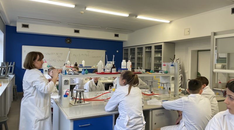 Uczniowie klas siódmych z Zespołu Szkolno-Przedszkolnego nr 2 w Knurowie wzięli udział w warsztatach chemicznych zatytułowanych „Rodzaje reakcji chemicznych”. Podczas