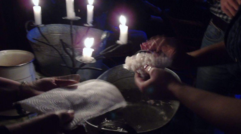 Podczas wydarzenia nie mogło zabraknąć również wylewania wosku na zimną wodę.