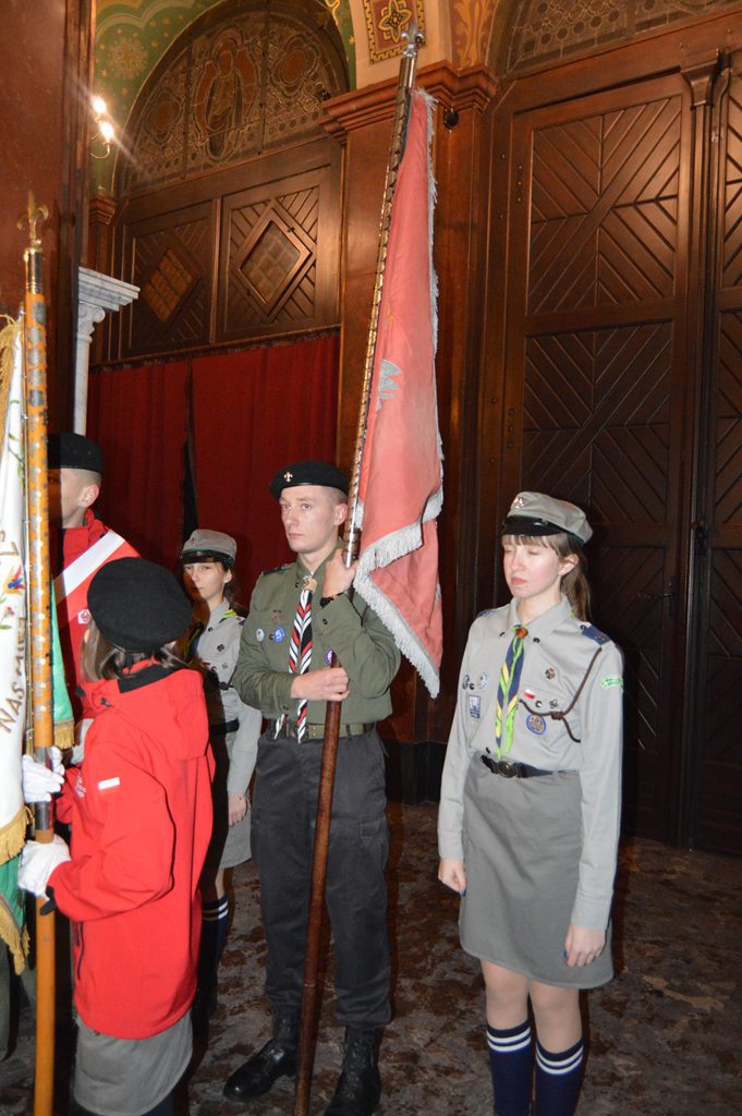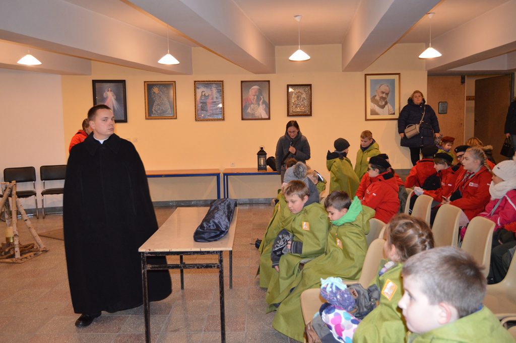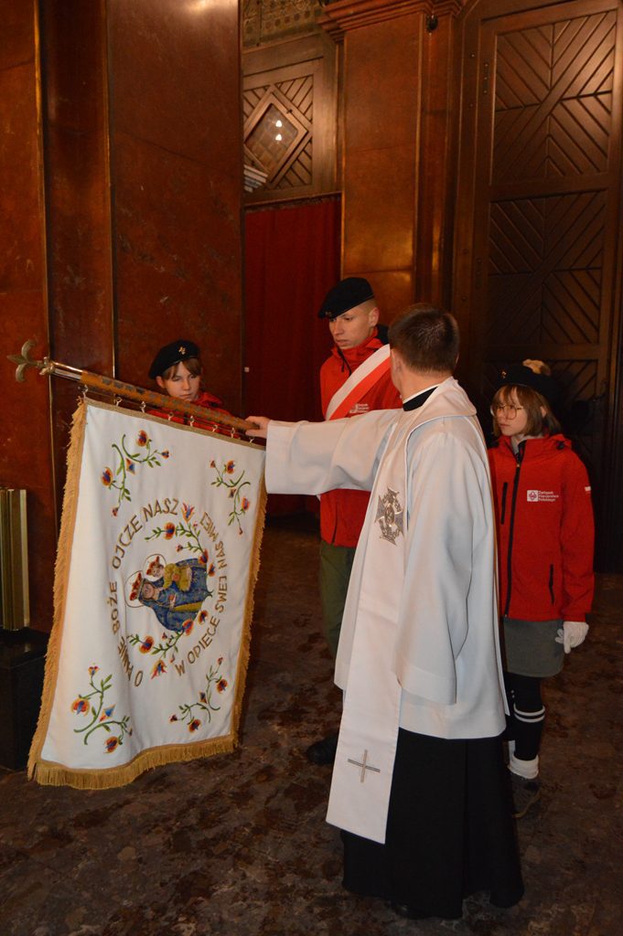 Przed bramą czekał ksiądz proboszcz a harcerze przekazali po krótkiej modlitwie światełko pokoju gospodarzowi parafii. To był niezapomniany wieczór, głównie za sprawą księdza Piotra i Jego harcerzy, zaś ksiądz proboszcz długo stał przy ołtarzu i dziękował wiernym za przybycie i długie oczekiwanie, oraz młodzieży, rodzicom i księdzu kapelanowi. Warto także raz jeszcze wspomnieć i podkreślić zaangażowanie wielu służb za stworzenie pięknej oprawy tej niecodziennej uroczystości, którą nam zafundowali knurowscy strażacy i służby mundurowe.