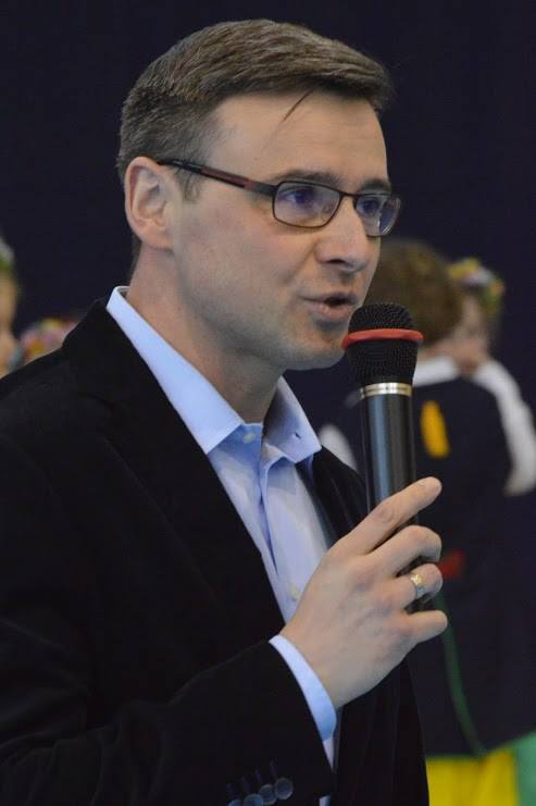 Przy jednym ze stolików nauczyciel pan Aleksander Bartlik udzielał informacji w sprawie organizacji kolonii letnich dla dzieci Gminy Pilchowice których organizatorem jest biuro INDEX.