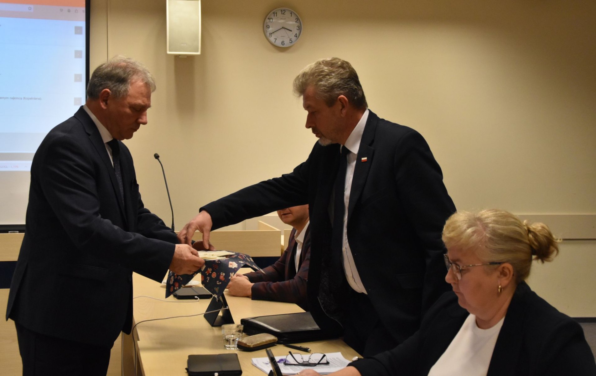 Na zakończenie Burmistrz Janiszewski oraz Przewodniczący Rady Miejskiej Artur Sola złożyli radnym życzenia świąteczne.