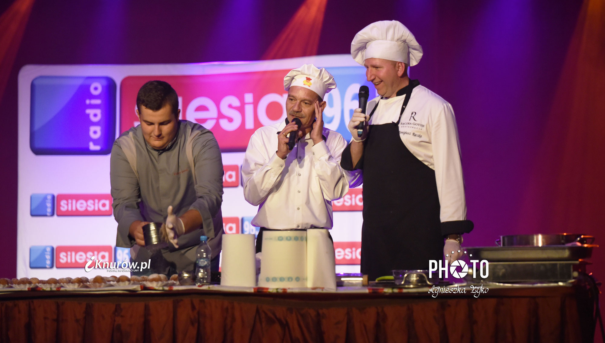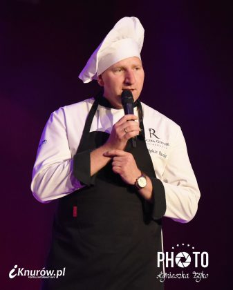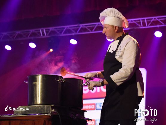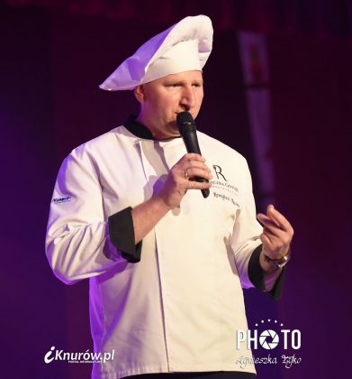 Restaurator przy specjalnie przygotowanym stole usytuowanym na samym środku sceny Domu Kultury w Knurowie-Szczygłowicach przygotował na oczach widzów trzy daniowy „babciny obiad”. Menu degustacyjne dedykował każdej osobie, która znajdowała się na widowni. Najpierw zaserwował bardzo smaczną zupę grzybową z makaronem, następnie garnuszek górniczy czyli przekładaniec wieprzowo-wołowy, a na deser przygotował serowe pączusie ( kreple) posypane pudrem.