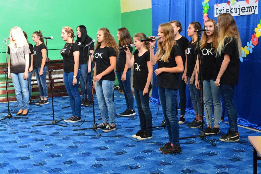 Następnie klasy zebrały się na sali gimnastycznej gdzie odbyły się krótkie występy artystyczne przygotowane przez uczniów.