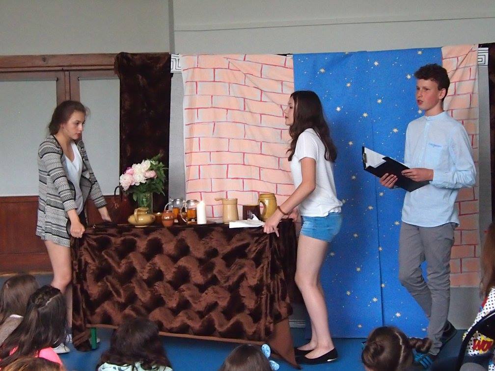 W organizację byli zaangażowani niemal wszyscy nauczyciele gimnazjum. Przedstawienie teatralne przeniosło nas w czasy starożytne gdzie odbywały się pierwsze przedstawienia teatralne, poprzez czasy elżbietańskie gdzie królował Szekspir, sprytnie znaleźliśmy się na naszym podwórku na którym możemy podziwiać „Zemstę” Aleksandra Fredry, „Goplanę” Mickiewicza oraz „Dziady.”.