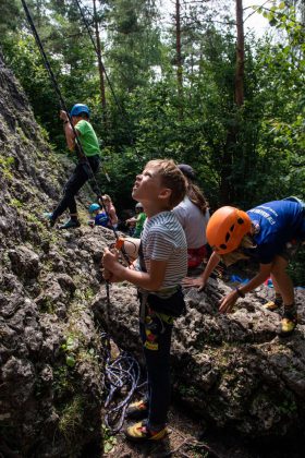 Dzieci podczas obozu szlifowały umiejętności nabyte w sekcjach, poznawały uroki wpinania w skałach.