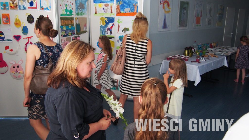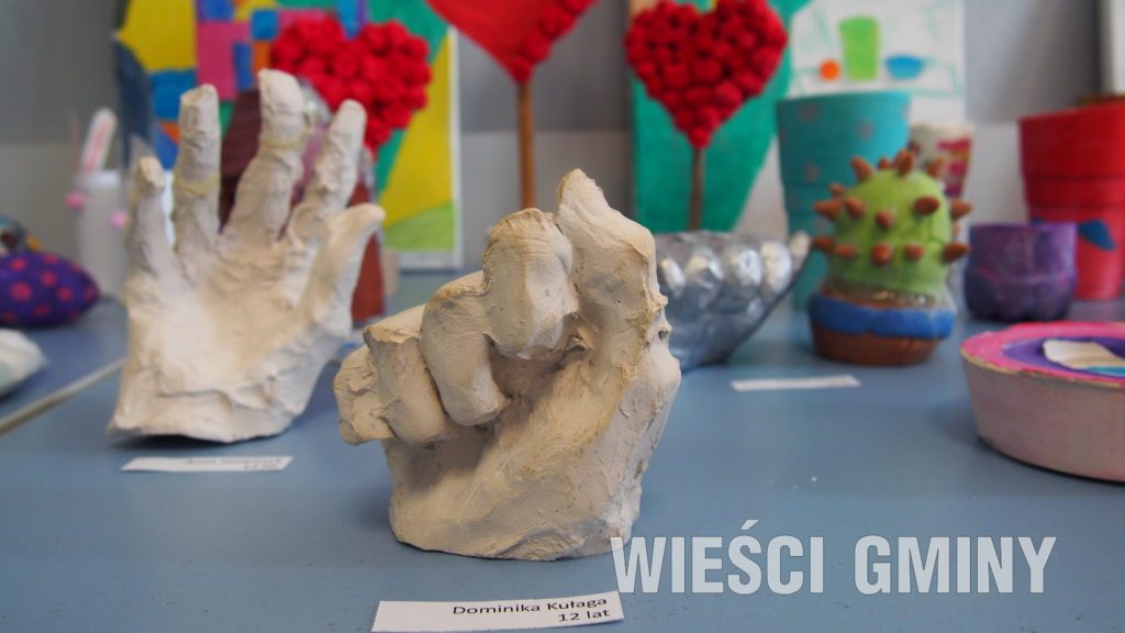Były to prace wykonane w różnych technikach o wielorakiej tematyce. Nie zabrakło rzeźb, odlewów, rysunków, dekoracji świątecznych, były także witraże i maski. Wszystko składało się na wernisaż podsumowujący rok szkolny 2018/19. Obecny był także dyrektor Gminnego Ośrodka Kultury, który podziękował dzieciom za udział w warsztatach oraz za zaangażowanie i kreatywność prowadzącej Marzenie Rakoniewskiej.