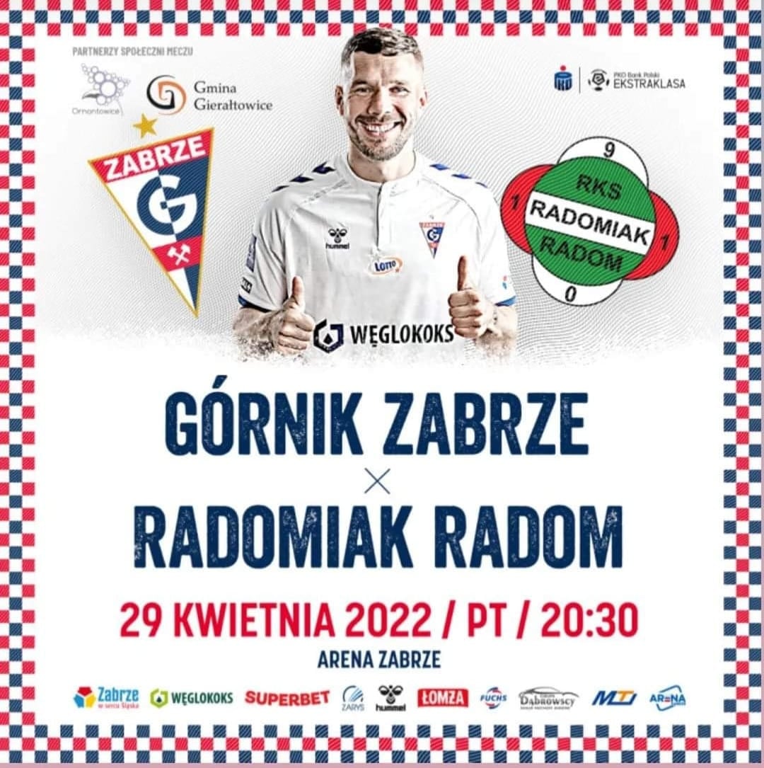 29 kwietnia 2022 r. o godz. 20.30 na Arenie Zabrze odbędzie się mecz Górnik Zabrze S.A. – Radomiak Radom