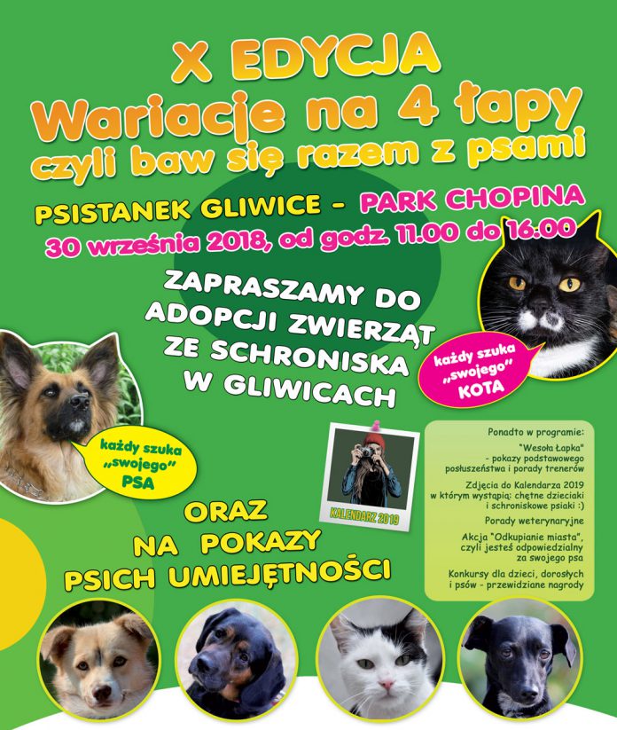 Przed nami jubileuszowa, X edycja Wariacji na 4 łapy, imprezy dla miłośników czworonogów. W niedzielę, 30 września, w parku Chopina atrakcji nie zabraknie!
