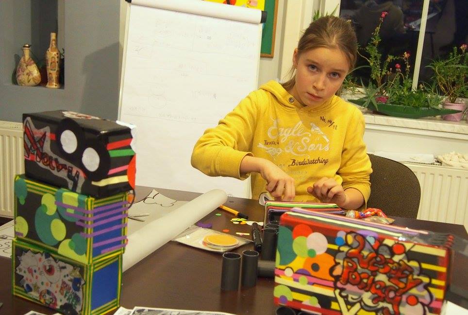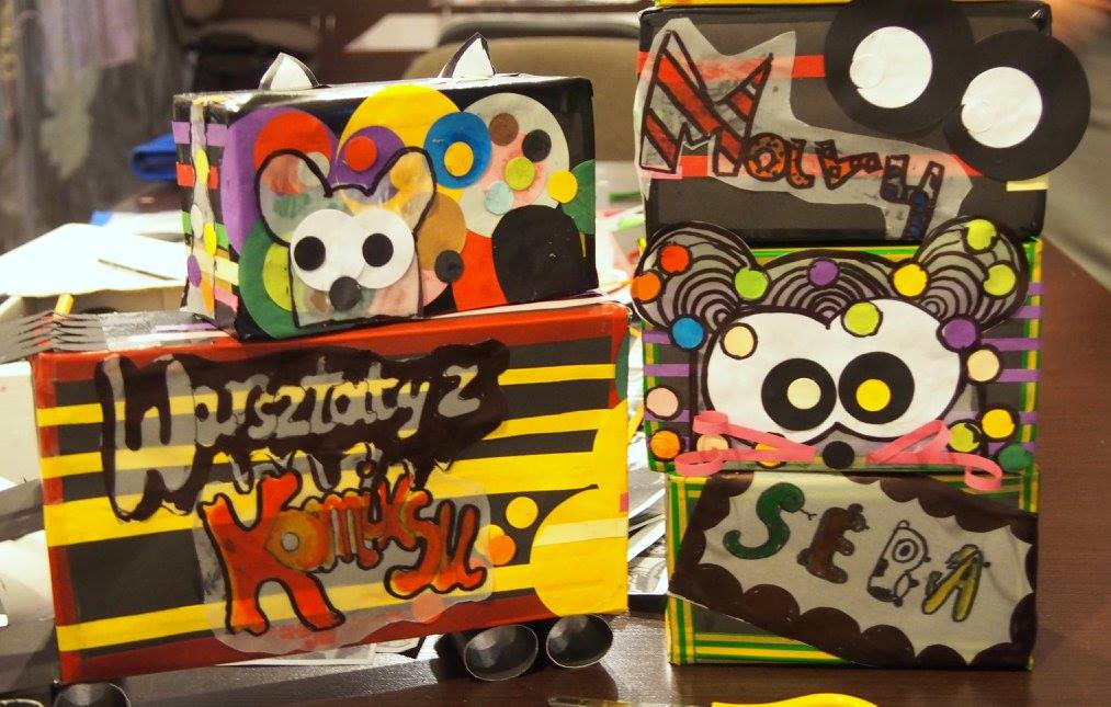 Oprócz tego w trakcie warsztatów dzieci poznawały techniki liternictwa, wymyślały i odwzorowywały fonty. Zajmowały się też projektowaniem nadruków na koszulki, rysowały mapę okolicy domu, buzie z różnymi emocjami, ozdabiali własne twarze na wzór postaci komiksowych oraz projektowali autorskie wagony.