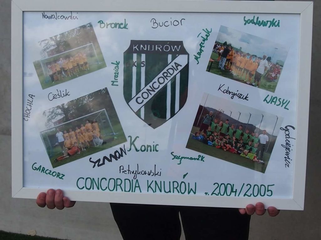 Przed dzisiejszym spotkaniem podopieczni Damiana Mehlicha zawodnicy Concordii z rocznika 2004/2005 wręczyli trenerowi pierwszej drużyny pamiątkowe zdjęcia w ramie. Zbigniew Matuszek jako pierwszy prowadził młodą drużynę Concordii 2004/2005 a dzisiaj po znakomitej rundzie wiosennej doprowadził pierwszy zespół do pojedynku o pozostanie w IV lidze.