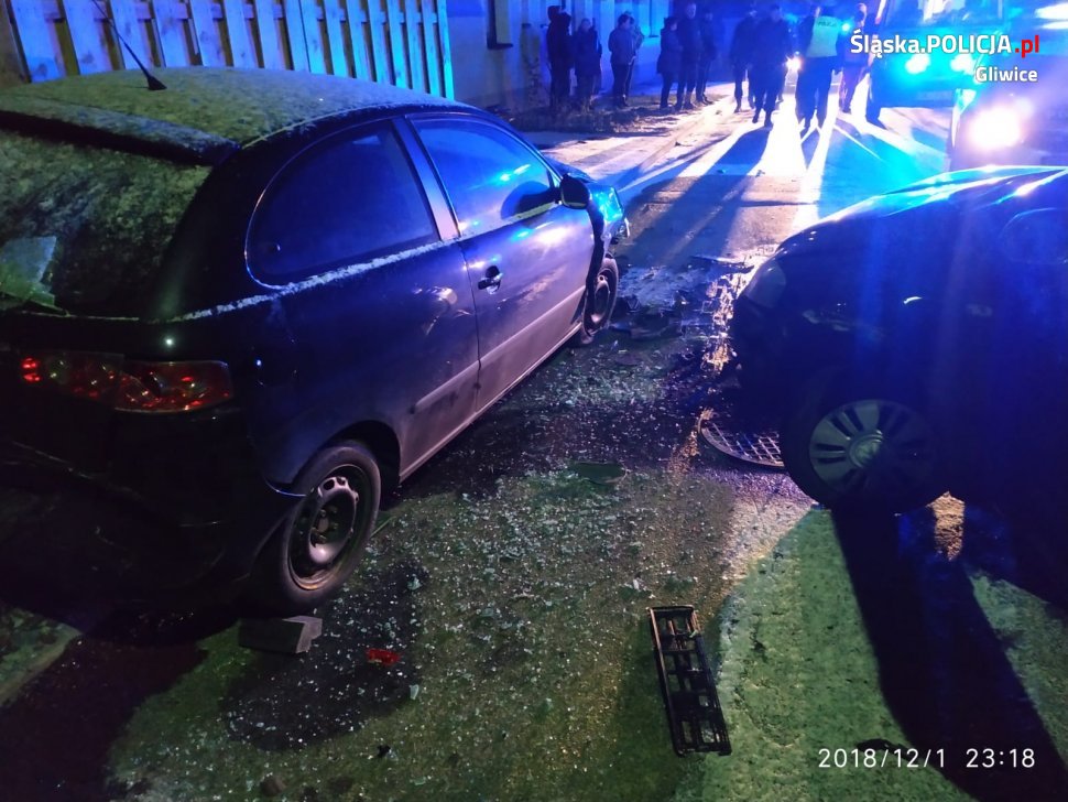 Kierujący volkswagenem 29-latek nie zatrzymał się do policyjnej kontroli w Gliwicach. Mundurowi ruszyli za nim w pościg. Udało im się go zatrzymać dopiero w Knurowie, gdzie mężczyzna nie zapanował nad samochodem i zniszczył zaparkowane przy drodze auta. Nie miał prawa jazdy.
