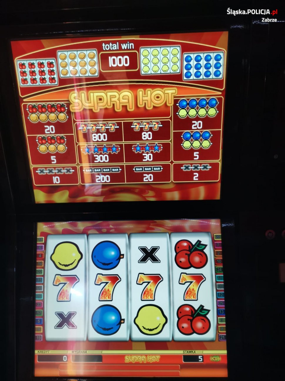 Policjanci zajmujący się zwalczaniem przestępczości gospodarczej zabrzańskiej komendy uzyskali informację, że w lokalu w dzielnicy Zaborze mogą znajdować się automaty do nielegalnych gier hazardowych. Wspólnie z funkcjonariuszami służby celno-skarbowej wkroczyli do salonu w dzielnicy Zaborze, gdzie podejrzewano, że znajdują się nielegalne automaty. W związku z naruszeniem przepisów o grach losowych mundurowi zabezpieczyli 2 urządzenia, na których były urządzane nielegalne gry hazardowe wbrew obowiązującym przepisom. Zabezpieczone automaty trafiły do magazynów śląskiego Urzędu Celno-Skarbowego. Teraz śledczy ustalają, jakie straty poniósł Skarb Państwa w związku z nielegalną działalnością salonu gier. Za przestępstwo prowadzenia gry losowej bez wymaganego zezwolenia lub koncesji grożą 3 lata więzienia i wysoka grzywna.