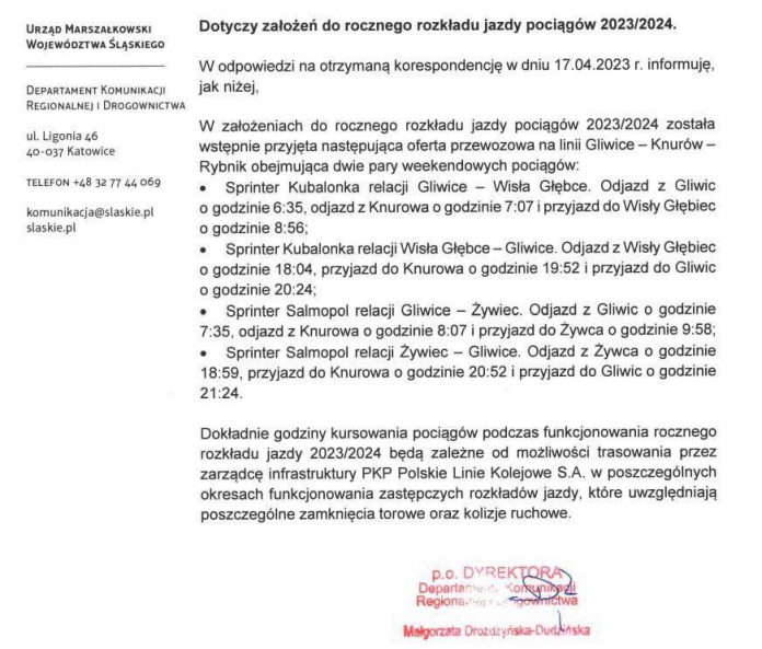 Mamy oficjalne potwierdzenie z UMWŚ w sprawie połączeń realizowanych przez Koleje Śląskie od grudnia tego roku.