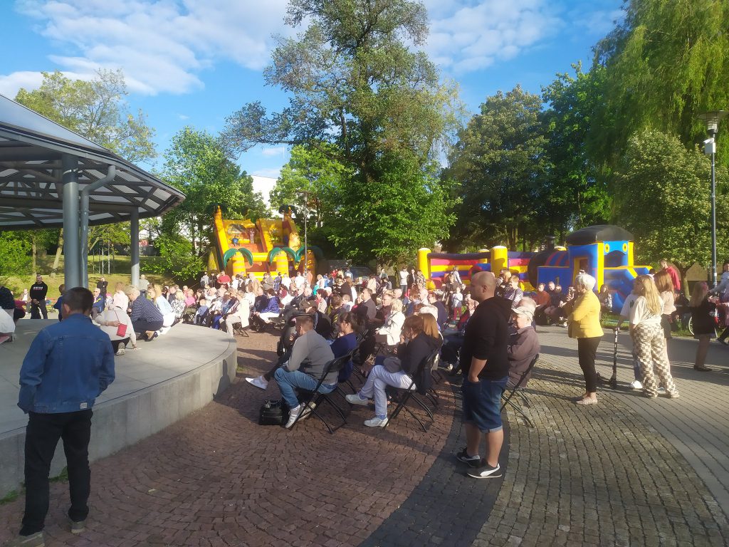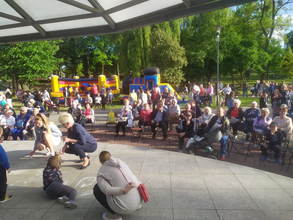 Na estradzie plenerowej w parku przy ulicy Ogana trwa festyn rodzinny. Organizowane wydarzenie ma charakter śląski czyli „po naszymu”.