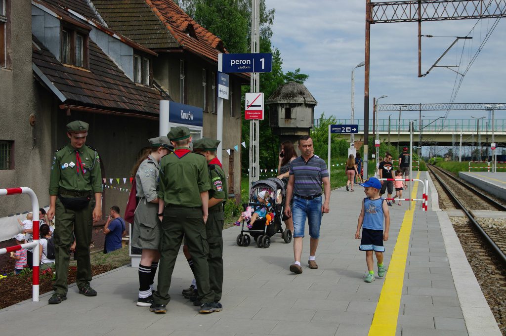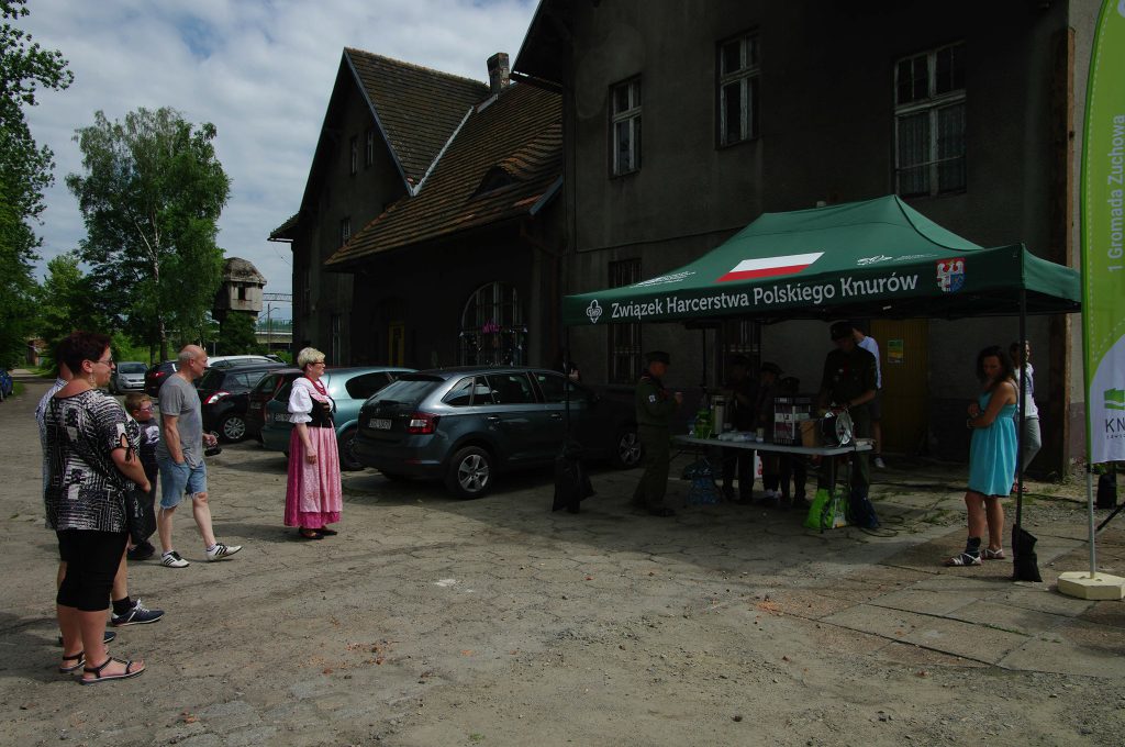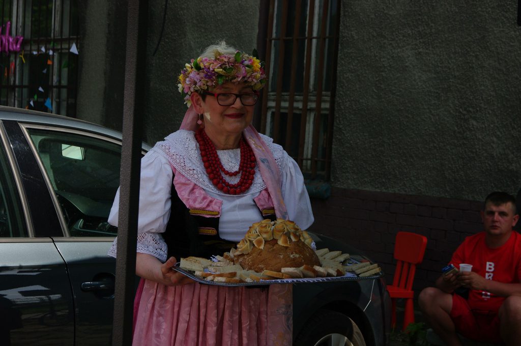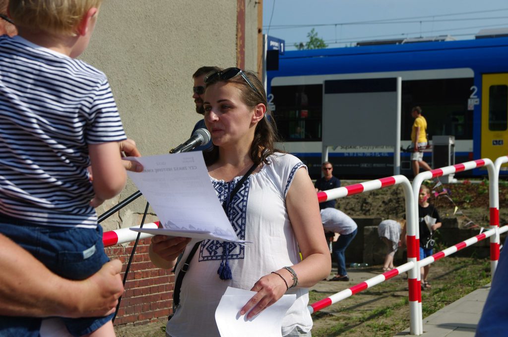 Wszystkich przybyłych, w tradycyjnym stylu przywitała pani Danuta Glińska, świeżym, pachnącym chlebem, oraz opowieściami o dworcu działającym przed laty.