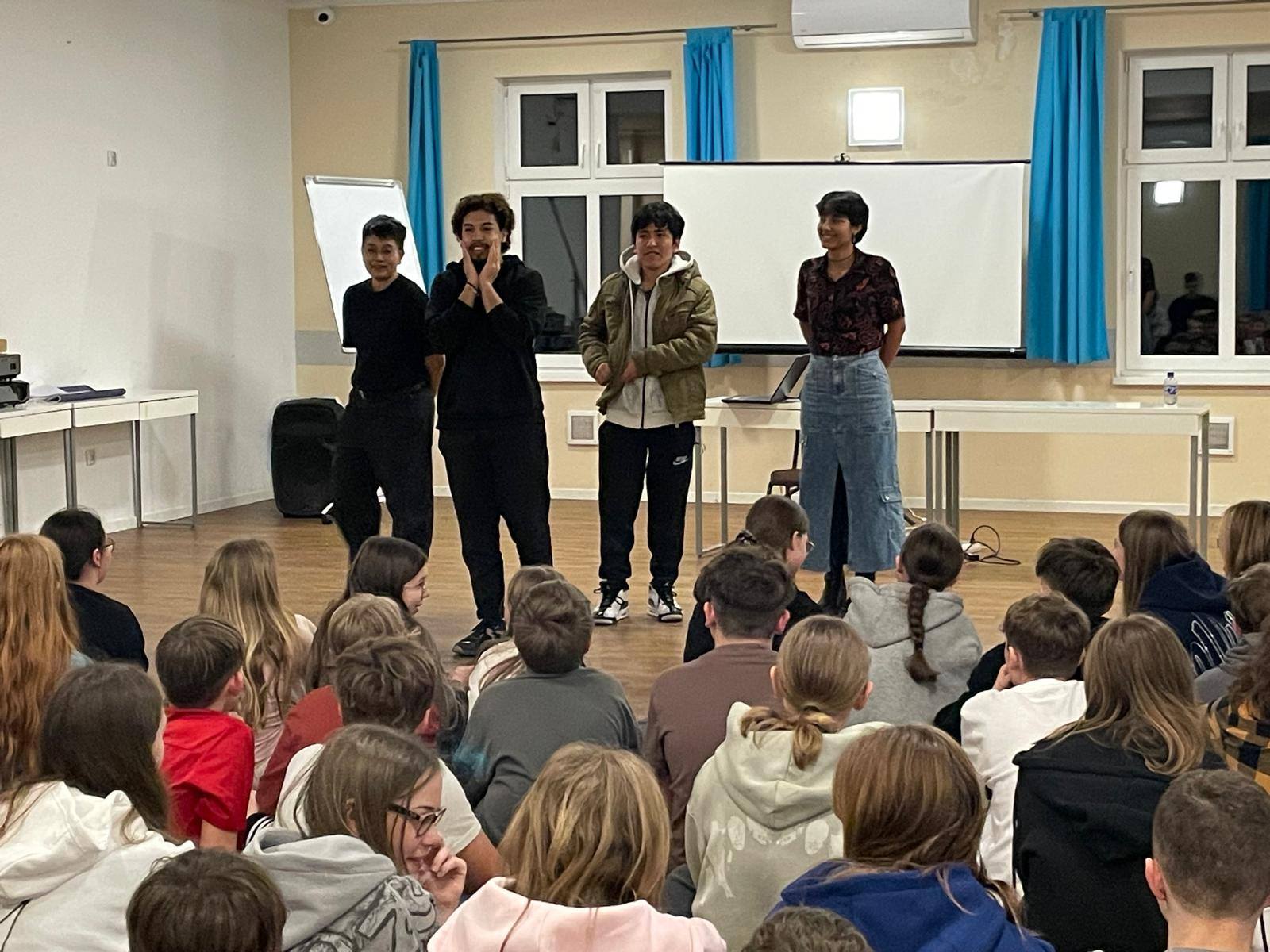 Dziś, po przyjeździe, uczniowie mieli okazję spotkać się z wolontariuszami z różnych zakątków świata, którzy zapoznali ich z zasadami obowiązującymi podczas pobytu. Wśród nich byli przedstawiciele Kolumbii, Maroka, Indonezji i Peru, co z pewnością stanowiło dla młodzieży inspirację do nauki i wymiany doświadczeń. Zasady panujące na obozie to: szacunek, punktualność, rozmowy wyłącznie w języku angielskim, zakaz korzystania z telefonów oraz, rzecz jasna, obowiązkowy uśmiech.