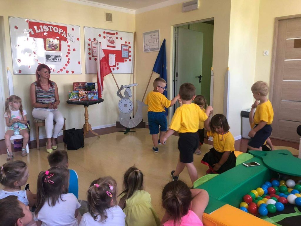 W podziękowaniu dzieci z grupy Krasnale zatańczyły dla pani Eweliny do śląskiej muzyki ludowej. Pani Ewelina przygotowała dla dzieci słodki poczęstunek oraz prezent w postaci książki. Jeszcze raz serdecznie pani dziękujemy za bardzo miłe spotkanie i mamy nadzieje że jeszcze nie raz będziemy mogli panią gościć.