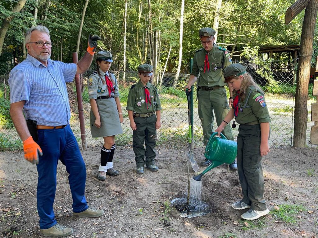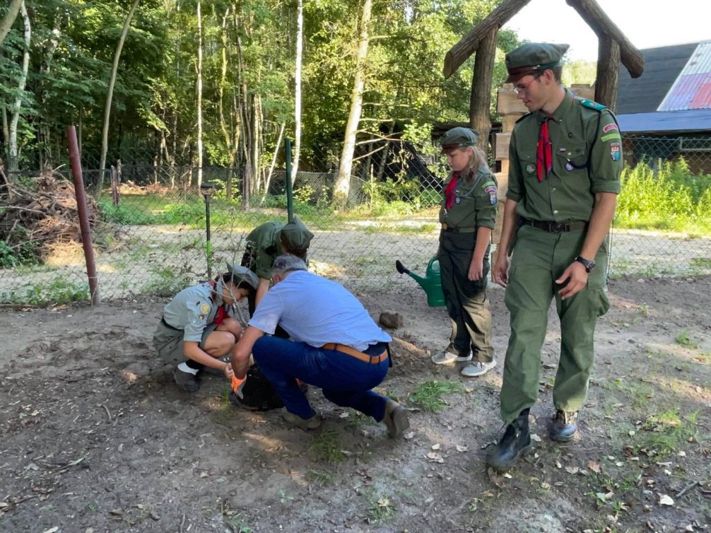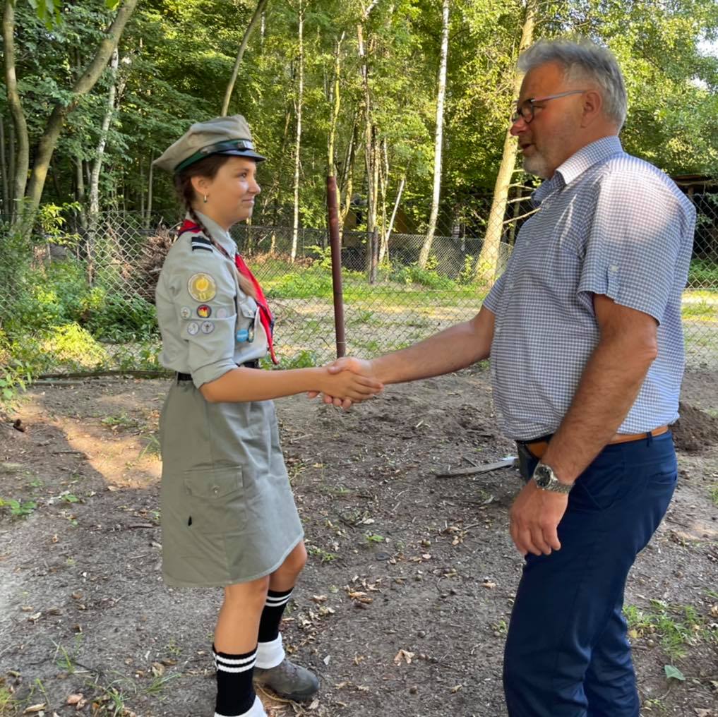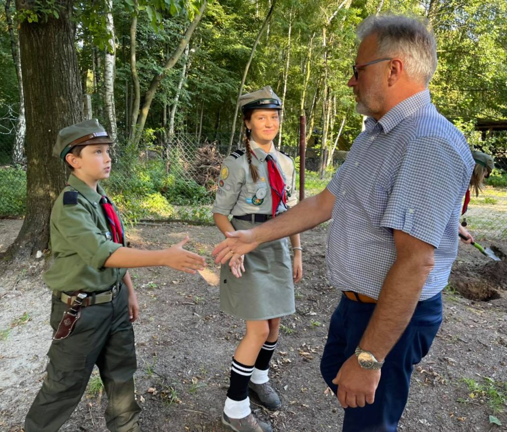 W uroczystości uczestniczyli harcerze Milena Truchlewska i Jakub Krysiuk wraz z nowym drużynowym Robertem Krawczykiem oraz wiceprezydent Piotr Surówka i radni Miasta Knurowa.