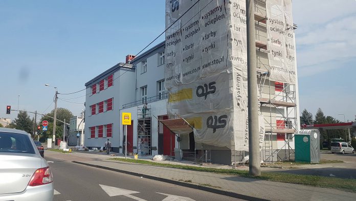 Budynek podczas prac termomodernizacyjnych otrzymuje zdecydowanie nowe, dużo bardziej ładniejsze, ale rownież i funkcjonalne oblicze.