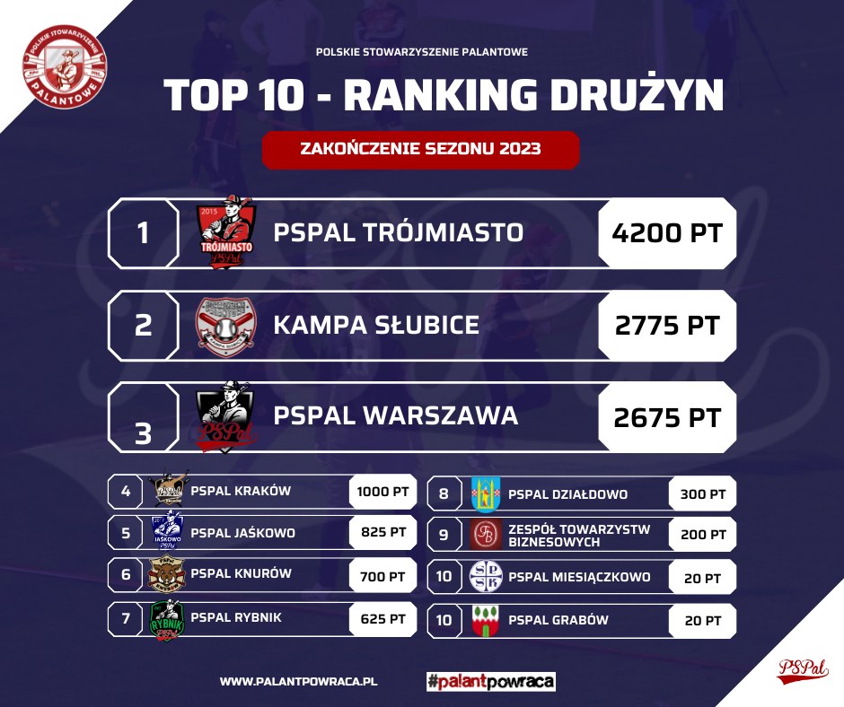 Polskie Stowarzyszenie Palantowe opublikowało oficjalny ranking na zakończenie sezonu 2023. Jest on tworzony na podstawie wyników w turniejach organizowanych w całym kraju przez ostatnie dwanaście miesięcy. Bardzo wysoko w tej klasyfikacji znalazła się drużyna PSPal Knurów, które zameldowało się na szóstym miejscu z dorobkiem 700 punktów.