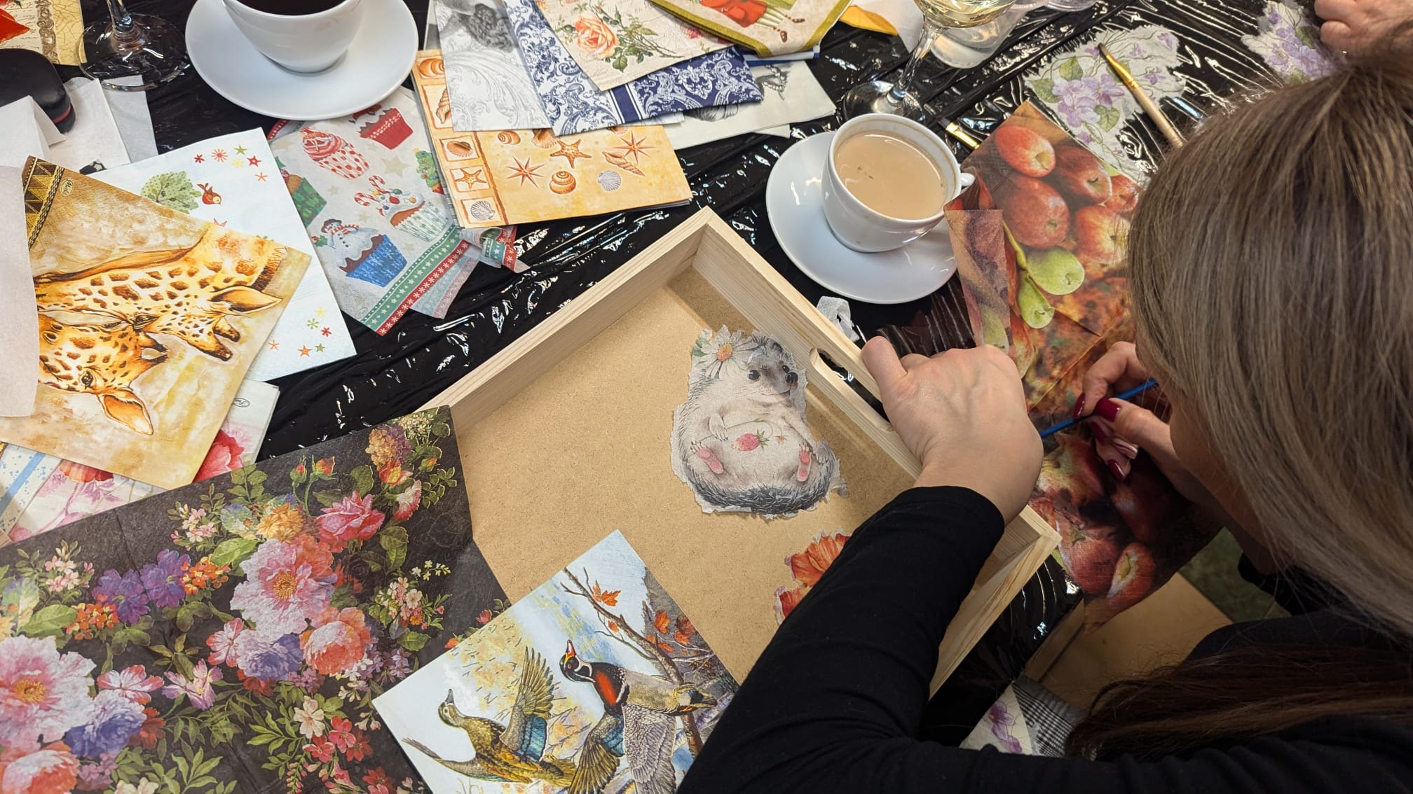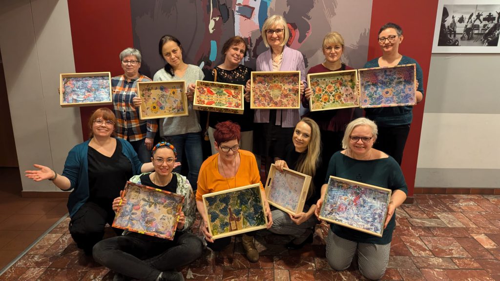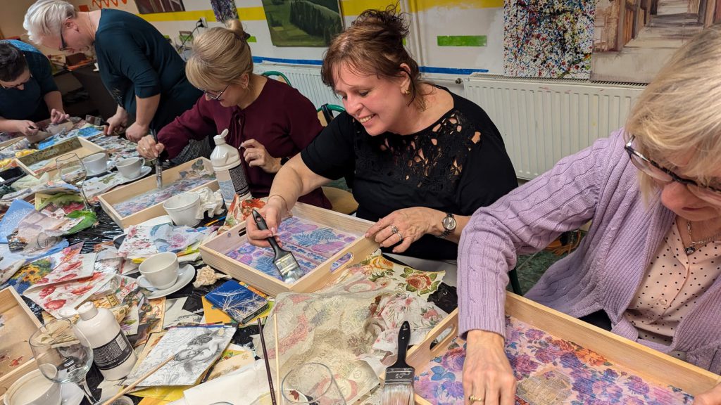 Piątkowy wieczór w Domu Kultury w Szczygłowicach upłynął w niezwykle twórczej atmosferze. Uczestniczki warsztatów decoupage miały okazję ozdabiać drewniane tace pięknymi ornamentami, wykorzystując serwetki z kolorowymi wzorami. Pod okiem instruktorki powstały prawdziwe małe dzieła sztuki, które nie tylko cieszą oko, ale też mogą stać się wyjątkową ozdobą domowych wnętrz.
