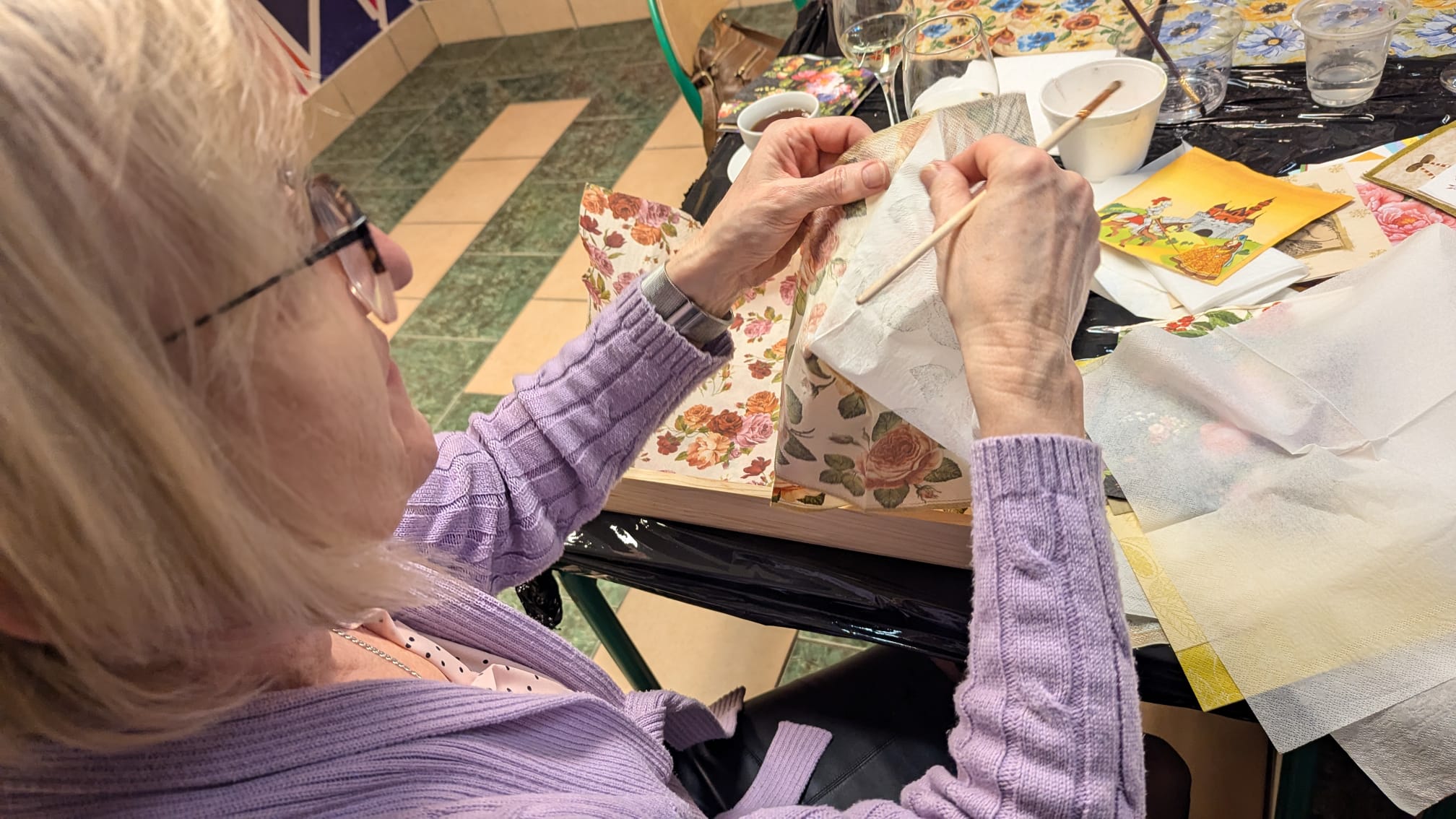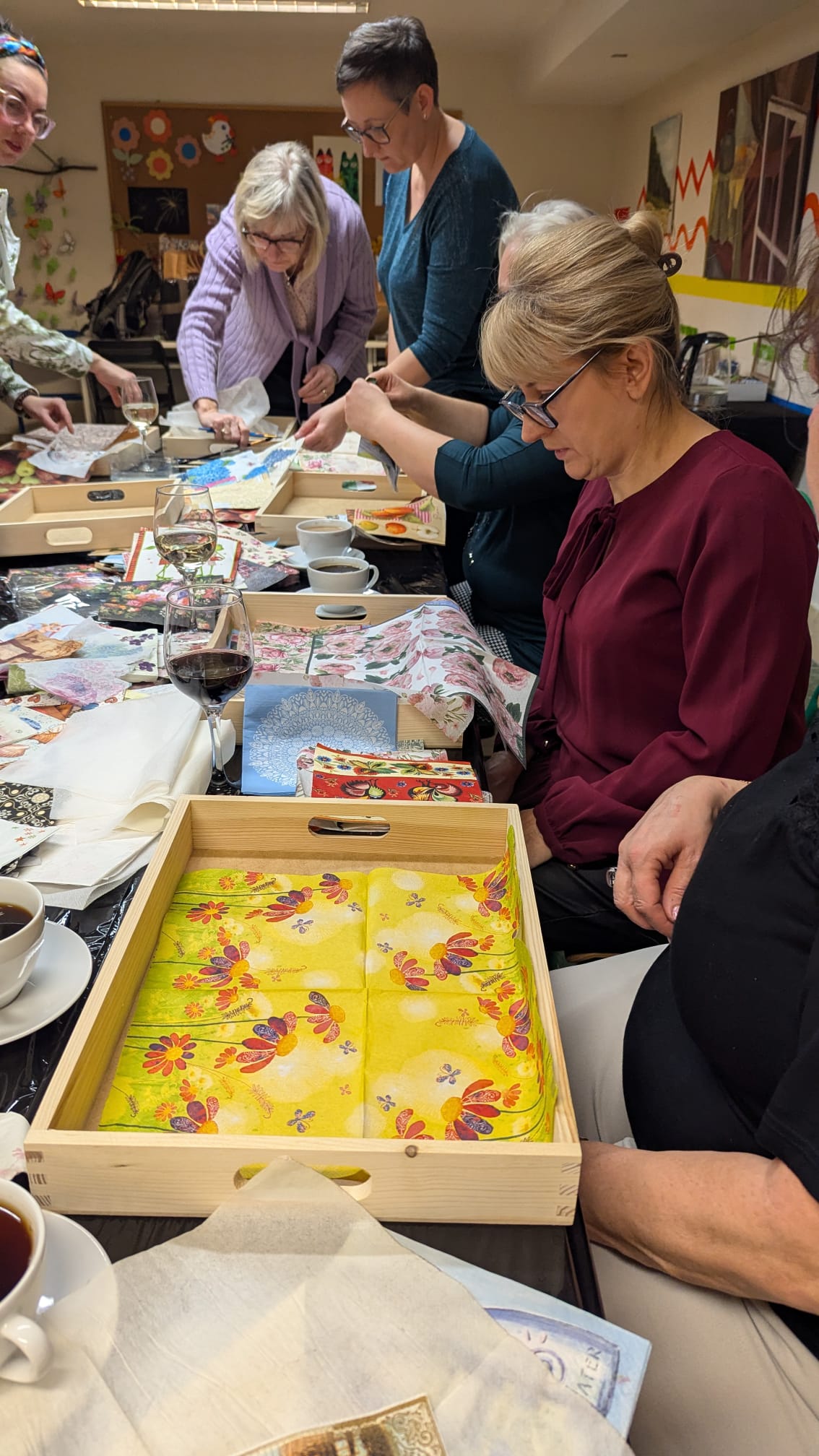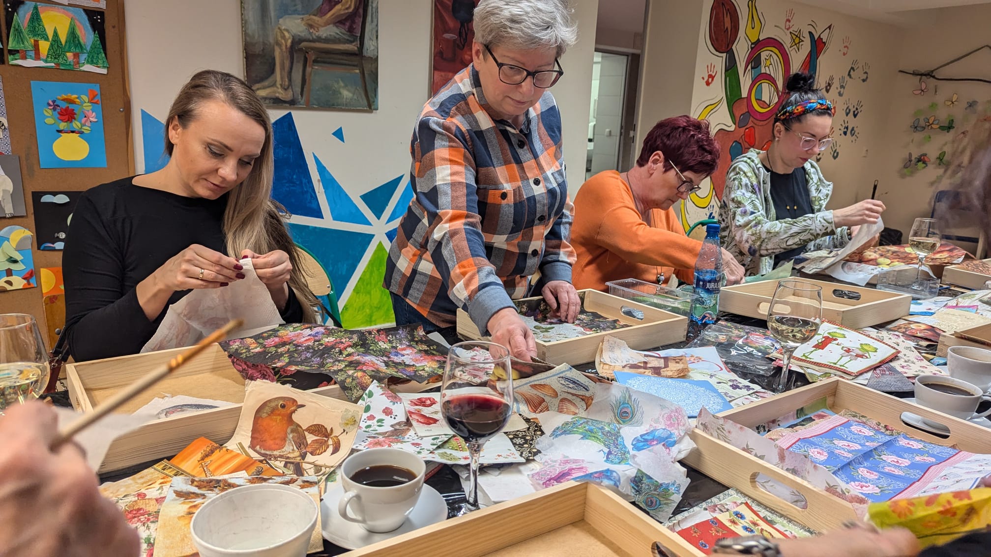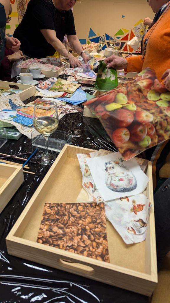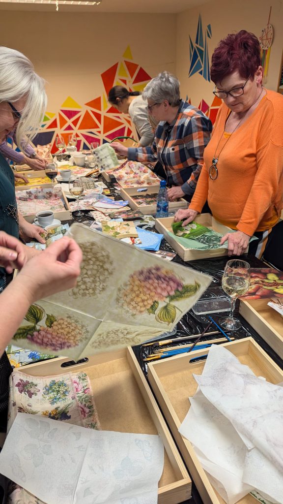 Spotkanie było nie tylko okazją do rozwijania zdolności manualnych, ale także do wspólnego spędzenia czasu w kobiecym gronie. Tym razem, przy lampce wina, uczestniczki wzniosły symboliczny toast, celebrując chwile kreatywności i relaksu. Ciepła, pełna śmiechu i rozmów atmosfera sprawiła, że warsztaty stały się czymś więcej niż tylko zajęciem artystycznym – były także doskonałą formą odprężenia po tygodniu pełnym obowiązków.
