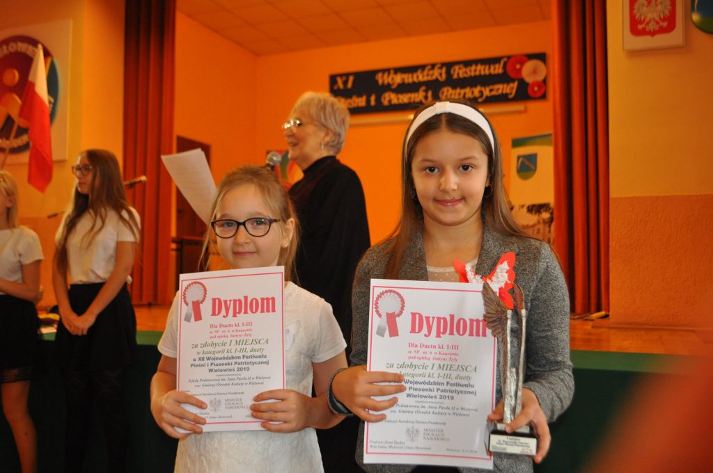 26 października uczennice z MSP nr 6 im. Królowej Jadwigi Dorota Kaczorowska, Wiktoria Odrobina, pod opieką pani Justyny Żyły, oraz Milena Prokop z Miejskiej Szkoły Podstawowej nr 9 im. Marii Konopnickiej pod opieką pana Jacka Żyły wzięły udział w XII Wojewódzkim Festiwalu Pieśni i Piosenki Patriotycznej. Festiwal został zorganizowany pod patronatem Ministra Edukacji Narodowej Pana Dariusza Piontkowskiego, Posłów Ziemi Śląskiej oraz Wójta Gminy Wielowieś.