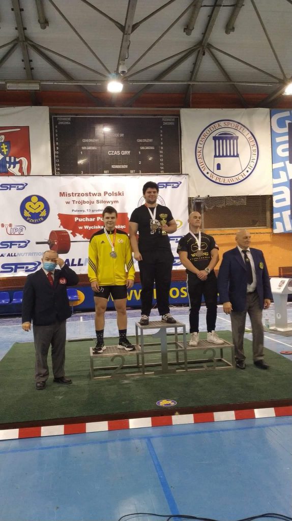 złoty medal z wynikiem 175 kg, ustanawiając tym samym nowy rekord Polski oraz trzykrotnie go poprawiając. BYŁ TO DEBIUT ZAWODNIKA W WYCISKANIU W KOSZULI.