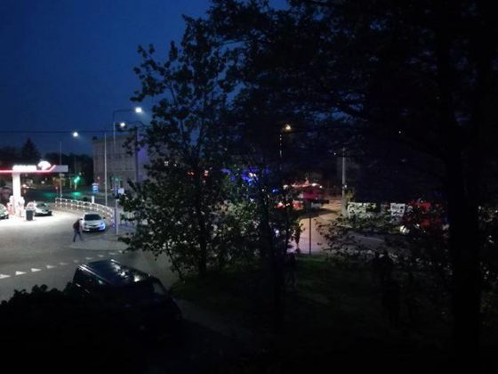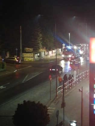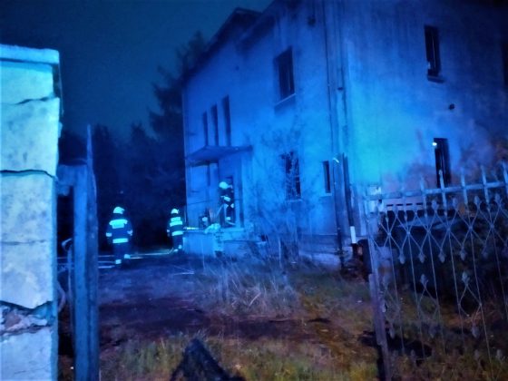 Pożar pustostanu na skrzyżowaniu ul. 1 Maja / Wolności, obok stacji paliw