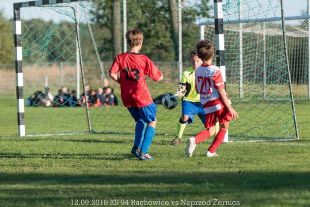 W pierwszym meczu sezonu Ligi Orlików nasi młodzi zawodnicy przegrali na wyjeździe z KS-em 94 Rachowice 1:15. Bramkę dla Naprzodu zdobył Michał Pohl.