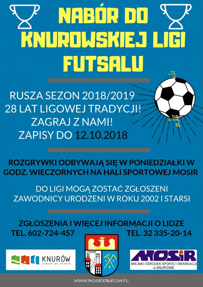 Miejski Ośrodek Sportu i Rekreacji w Knurowie ogłasza nabór drużyn do rozgrywek Knurowskiej Ligi Futsalu w sezonie 2018/19.