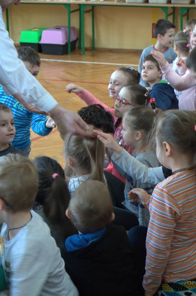Pan Andrzej w interesujący sposób przybliżył uczniom szkoły życie i zwyczaje wielu ich gatunków. Uczniowie klas 0, 1, 2, i 3 mieli możliwość bliskiego kontaktu z przywiezionymi zwierzętami; mogli je dotykać i głaskać.