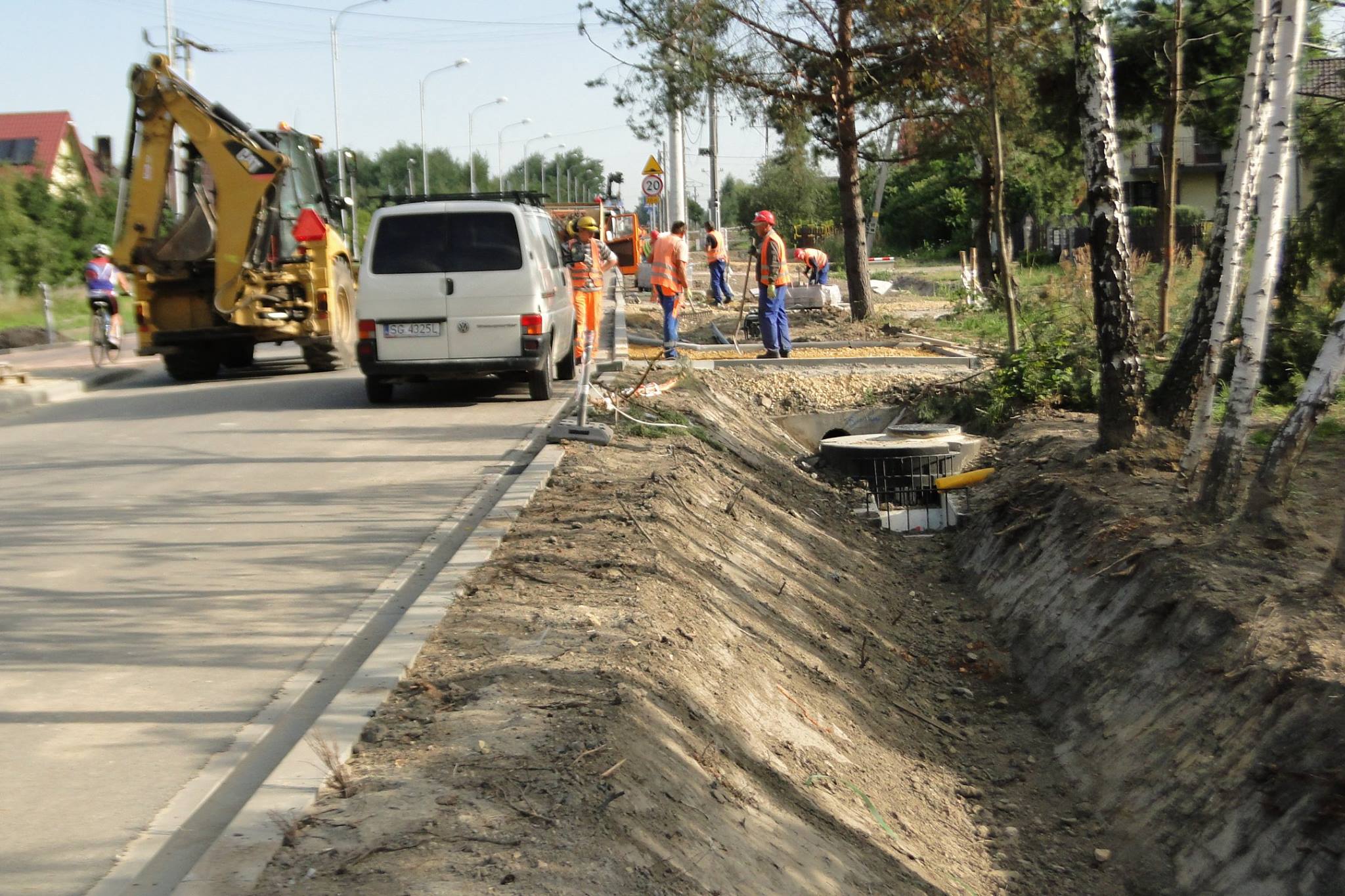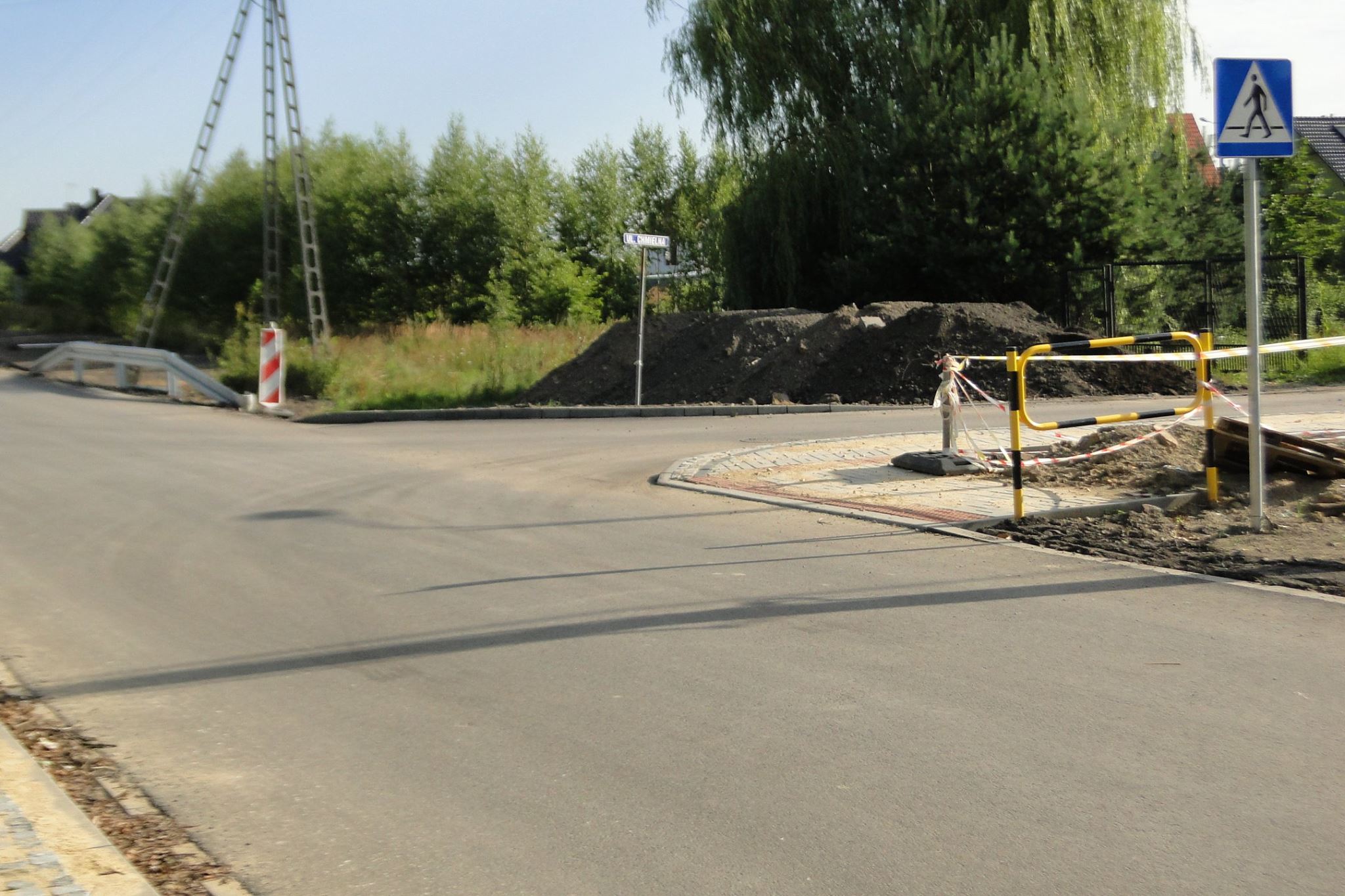 Przy skrzyżowaniu z ulicą Akacjową został postawiony nowy słup z linią zasilającą a instalacja oświetleniowa nowych słupów jest już gotowa. Przy ulicy Koziełka powstaje nowy rów odwadniający od strony ulicy Akacjowej. W tym miejscu zaczyna się robić coraz ładniej i niedługo będzie to ulubione miejsce spacerów, czy też jazdy na rowerze. Szybki ruch samochodowy skutecznie będą ograniczać progi spowalniające budowane też jako przejścia dla pieszych.
