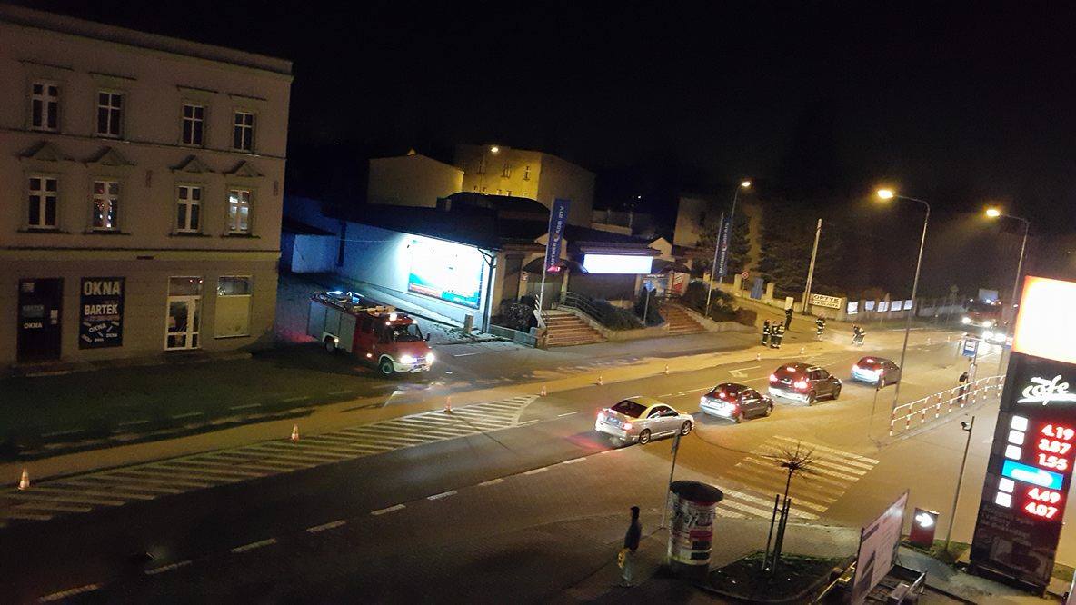 Na miejscu straż pożarna usuwa niebezpieczne plamy. Miejsce zdarzenia zabezpiecza Straż Miejska.