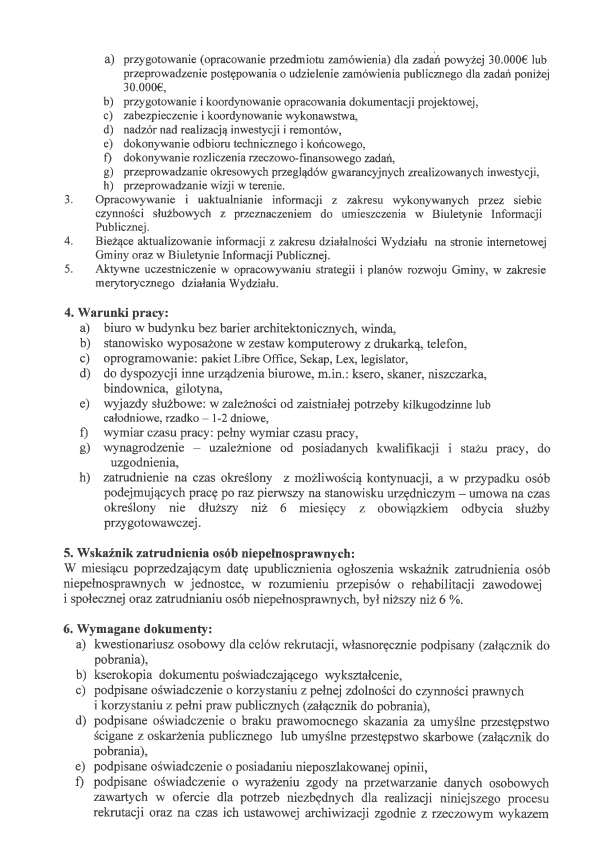 Ogłoszenie o naborze na wolne stanowisko urzędnicze: „Zastępca Naczelnika Wydziału Rozwoju i Inwestycji”: