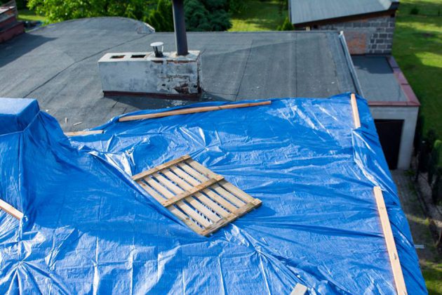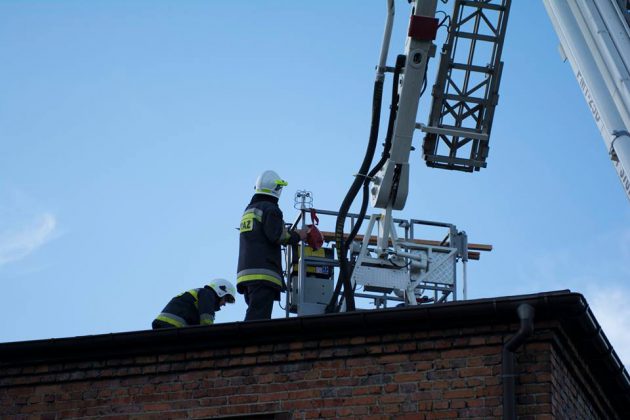 Po przybyciu na miejsce zdarzenia zastaliśmy częściowo pęknięty dach oraz strop budynku, w jednym z pomieszczeń zawalił się również fragment sufitu, na szczęście podczas zdarzenia nikogo nie było wewnątrz pomieszczenia.