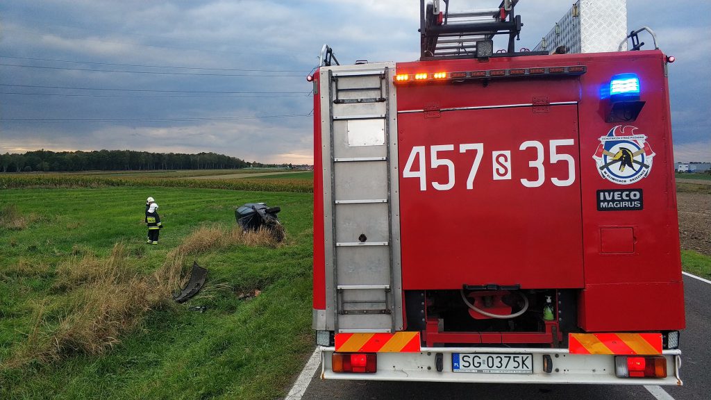 OSP KSRG Gliwice-Brzezinka: Dachowanie samochodu na drodze do Kleszczowa