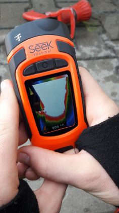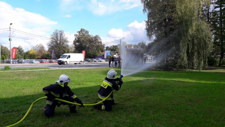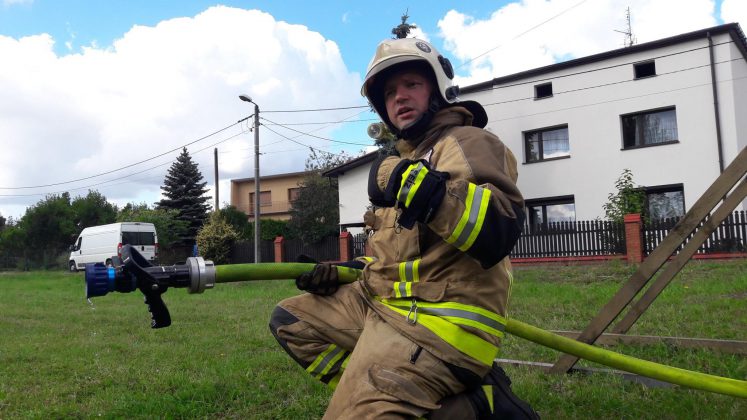 W części czysto praktycznej przećwiczyliśmy techniki operowania prądem wody, m.in. mające na celu zabezpieczenie przed niebezpiecznymi zjawiskami pożarowymi, oraz procedurę otwarcia drzwi do pomieszczenia objętego pożarem.