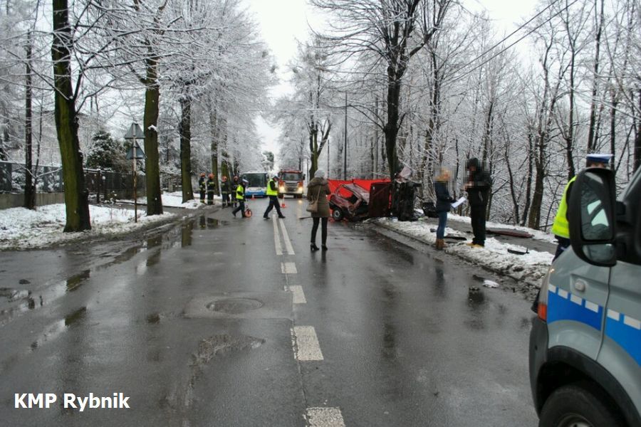 Do tragicznego wypadku doszło w dzisiaj, około 6.50 na ul. Chwałowickiej w Rybniku. Policjanci po przyjeździe na miejsce zdarzenia zauważyli roztrzaskany na drzewie samochód oraz trzech poszkodowanych znajdujących się poza pojazdem. Na miejscu służby ratunkowe udzieliły pomocy uczestnikom wypadku. Dwie ciężko ranne osoby trafiły do szpitali, a jedna osoba zginęła na miejscu. Z wstępnych ustaleń policjantów z wydziału ruchu drogowego rybnickiej komendy wynika, że samochodem podróżowała trójka młodych ludzi. 21-letni rybniczanin, który najprawdopodobniej kierował volkswagenem polo, poniósł śmierć na miejscu. 18-letnia pasażerka auta w ciężkim stanie została przetransportowana śmigłowcem lotniczego pogotowia ratunkowego do katowickiego szpitala. Jako ciężki, lekarze określają stan zdrowia drugiego z pasażerów – 28-letniego mieszkańca Rybnika. Śledczy badają przyczyny oraz okoliczności tego tragicznego w wypadku. Utrudnienia w ruchu trwały blisko 3 godziny.