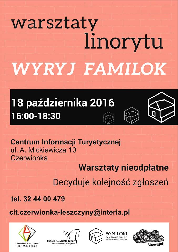Trwają zapisy na warsztaty linorytu ” Wyryj Familok ” 18 października 16.00 – 18.30